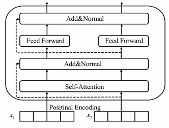编码单元最重要的模块是自注意力部分,见计算公式(4)。输入字向量矩阵为Q、K和V,dk为输入向量维度,QKT表示计算输入字向量之间的关系。经过dk进行缩小之后再通过softmax归一化得到权重表示,最后当前输出为句子中所有词向量的带权和,这样每个词的表示都蕴含了句子中其它词的信息,是上下文相关的,相对于传统词向量表示更加具有全局性。